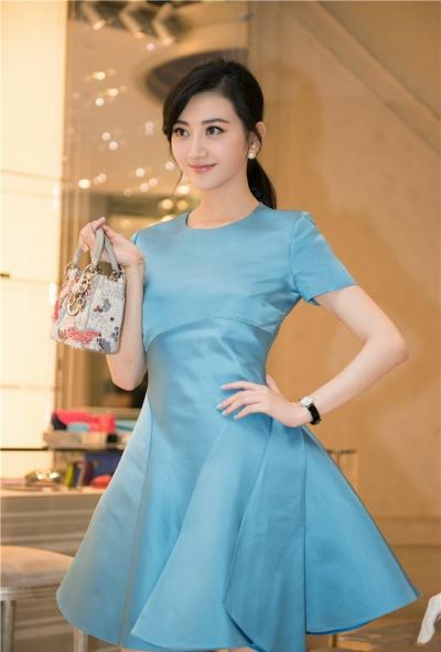 景甜着蓝裙时尚亮相